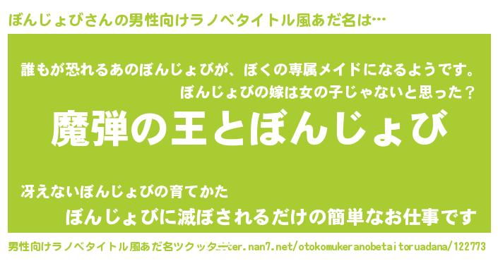 | 女子向けラノベタイトル風あだ名 | 『ぼんじょびが死なない童話 林檎のぼんじょびの診療簿』 |
