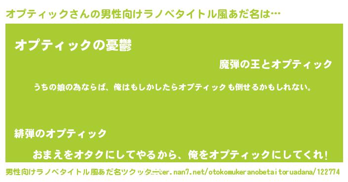 | 女子向けラノベタイトル風あだ名 | 『オプティックの婚約者』 |