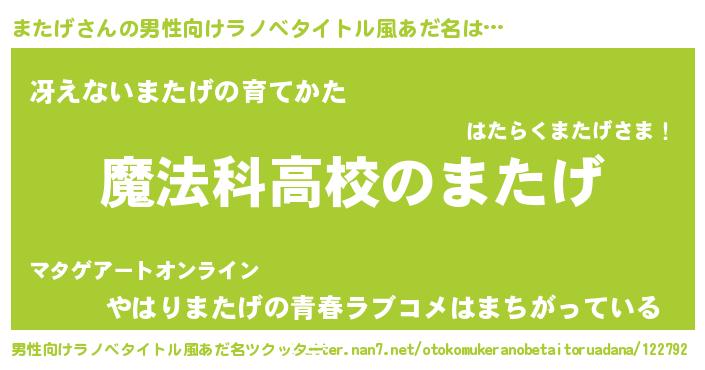 | 女子向けラノベタイトル風あだ名 | 『またげなんてお断りですっ。』 |
