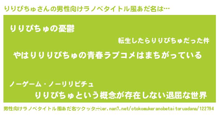 | 女子向けラノベタイトル風あだ名 | 『りりぴちゅ伯爵の花嫁』 |
