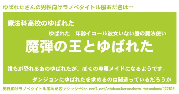 | 意味不明あだ名 | 『住所不定無職ゆばれた(77歳)』 |