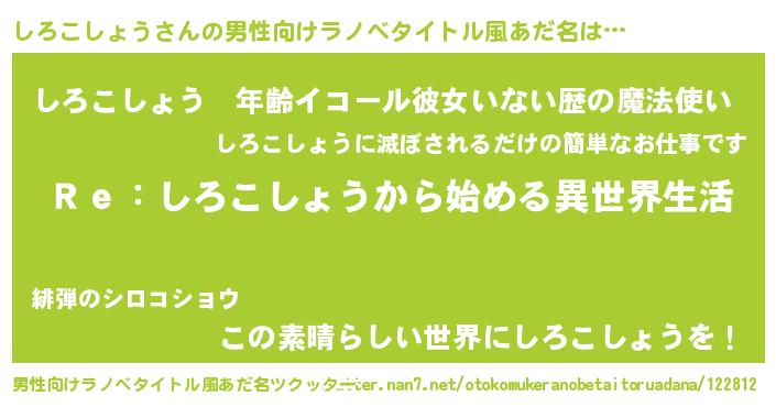 | 女子向けラノベタイトル風あだ名 | 『しろこしょうストレイドッグス』 |