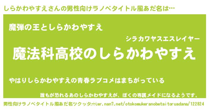 | 女子向けラノベタイトル風あだ名 | 『しらかわやすえなんてお断りですっ。』 |