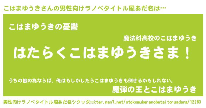 | 伝説のあだ名 | 『不死鳥の竜騎士こはまゆうき』 |