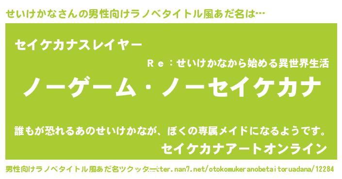 | 肩書あだ名 | 『せいけかな助教授』『せいけかな大佐』 |