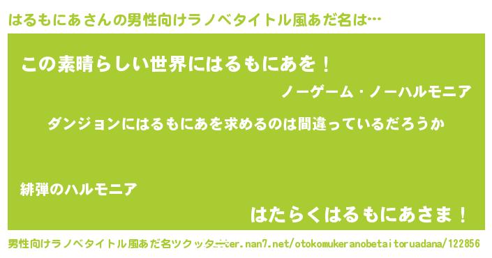 | 女子向けラノベタイトル風あだ名 | 『はるもにあは平凡を望む』 |