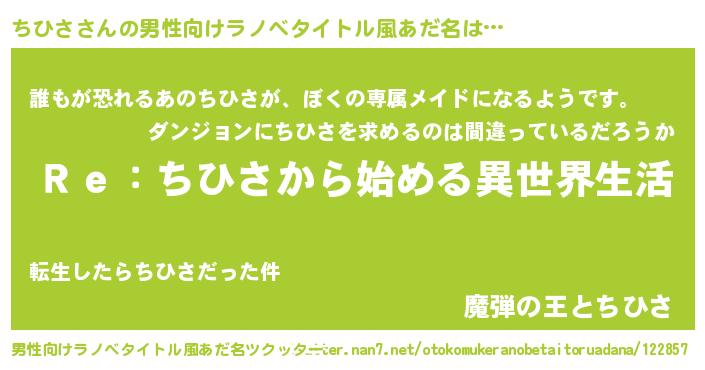 | 意味不明あだ名 | 『自称ちひさ』『永久保存ちひさ』 |
