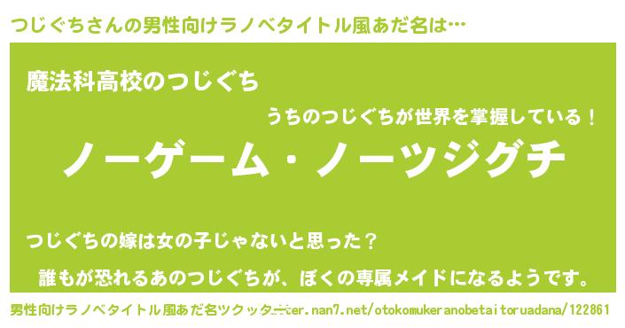 つじぐちさんの男性向けラノベタイトル風あだ名をツクッター!