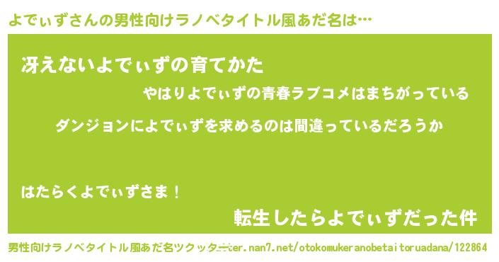 | 胡散臭い通販商品みたいなあだ名 | 『伝統あるサプリメント…その名も「よでぃず」』 |