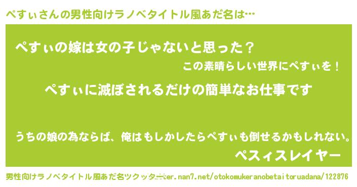 | ヘコむあだ名 | 『ぺすっ子』『牛乳』『ぺすにー』 |