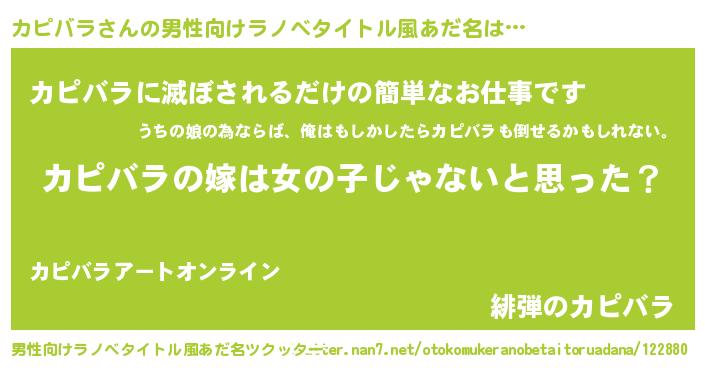 | 女子向けラノベタイトル風あだ名 | 『カピバラ様がみてる』 |