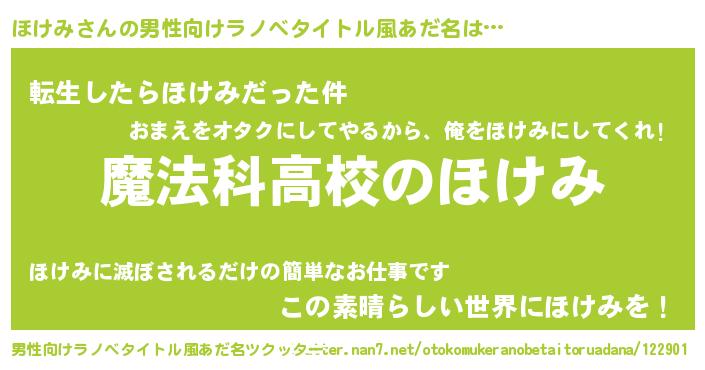 | 女子向けラノベタイトル風あだ名 | 『ほけみなんてお断りですっ。』 |