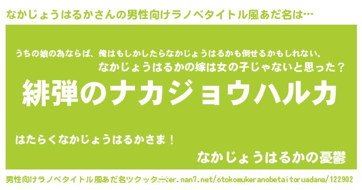 | 女子向けラノベタイトル風あだ名 | 『シンデレラなかじょうはるか家の靴箱館』 |