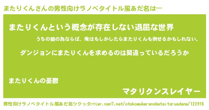 | 女子向けラノベタイトル風あだ名 | 『またりくんは平凡を望む』 |