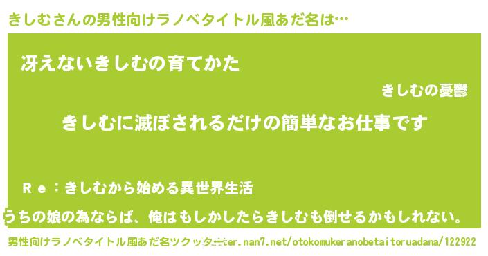 | ファンタジー風あだ名 | 『カークキシラー』『エターナルキシムー』 |