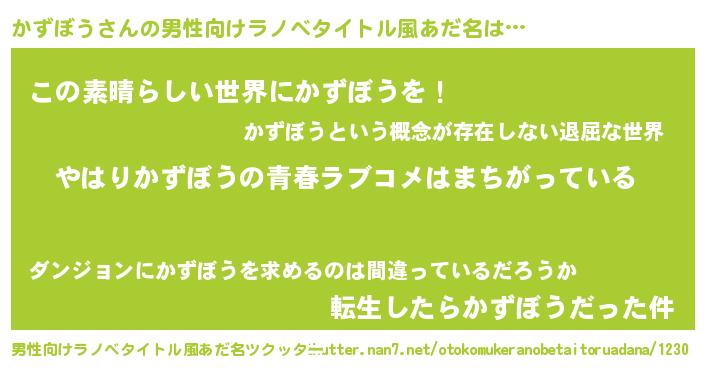 | ファンタジー風あだ名 | 『エターナルカズボウー』 |