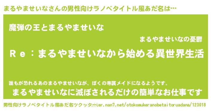 | ヒーロー風カッコイイあだ名 | 『最強戦士マルヤマセイナ』 |