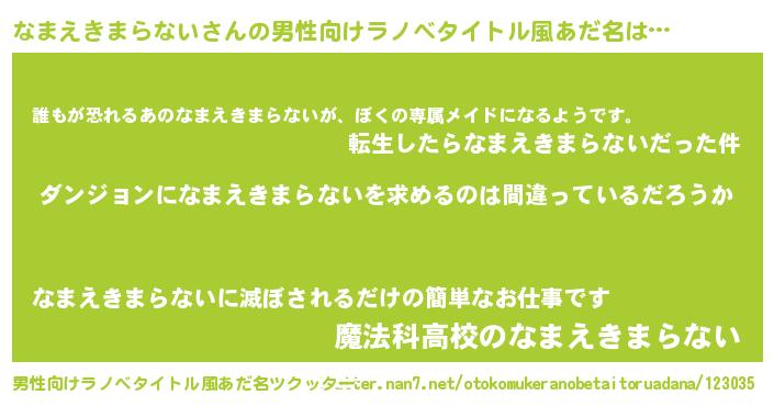 | 女子向けラノベタイトル風あだ名 | 『なまえきまらないは平凡を望む』 |
