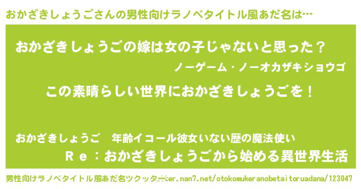 | 意味不明あだ名 | 『住所不定無職おかざきしょうご(8歳)』 |