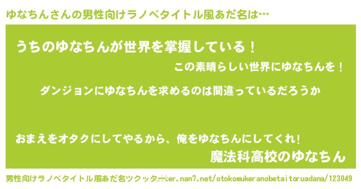 | 女子向けラノベタイトル風あだ名 | 『ゆなちんは平凡を望む』 |