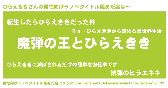 | 意味不明あだ名 | 『住所不定無職ひらえきき(2歳)』 |