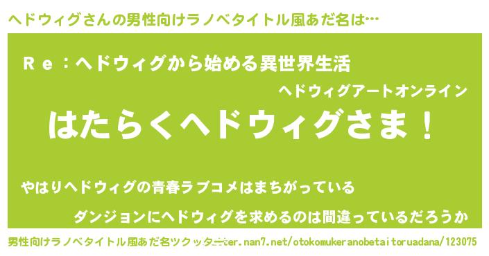 女子向けラノベタイトル風あだ名 | 『首の姫と首なしヘドウィグ』 |