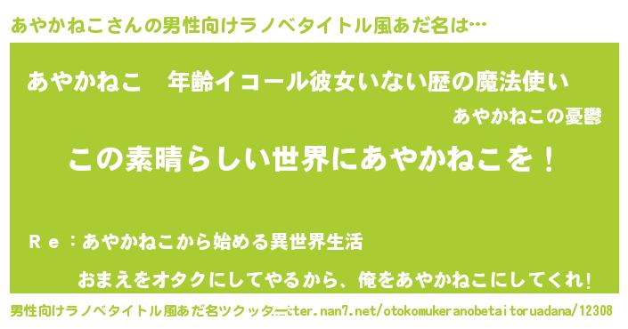 | 意味不明あだ名 | 『住所不定無職あやかねこ(5歳)』 |