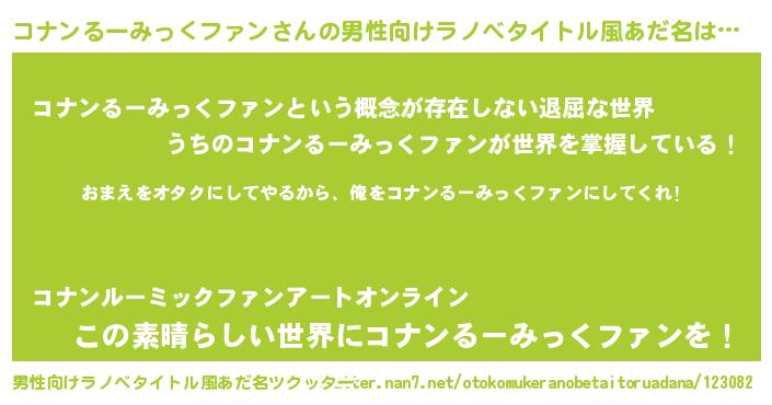 | ヘコむあだ名 | 『コナンるーみっくファン(笑)』『牛乳』 |