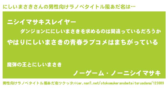 | 女子向けラノベタイトル風あだ名 | 『にしいまさきの雑貨屋さん』 |