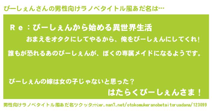 | 女子向けラノベタイトル風あだ名 | 『ぴーしぇんの契約王妃』 |