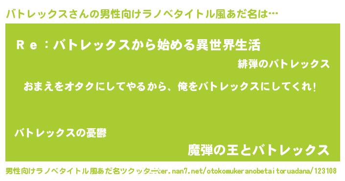 | 女子向けラノベタイトル風あだ名 | 『バトレックス恋絵巻』 |