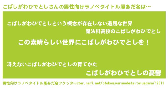 | 女子向けラノベタイトル風あだ名 | 『悪役こばしがわひでとしに転生したようですが、知った事ではありません』 |