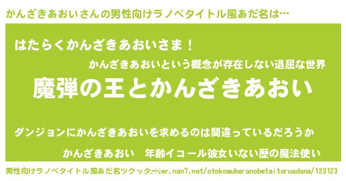 | 意味不明あだ名 | 『住所不定無職かんざきあおい(62歳)』 |