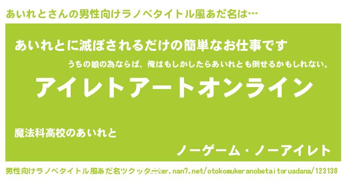 | ヒーロー風カッコイイあだ名 | 『スーパーアイレト』『仮面アイダー』 |