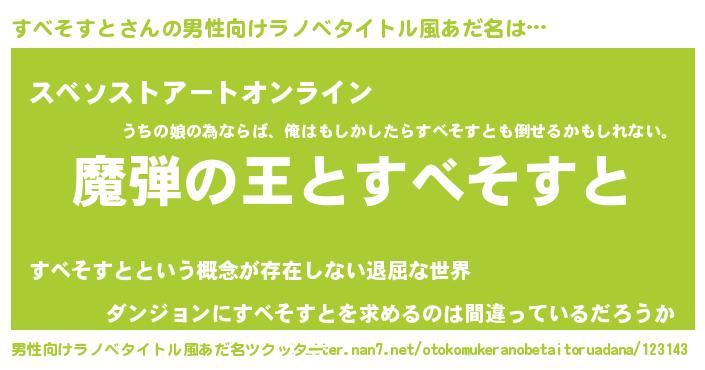 | 意味不明あだ名 | 『住所不定無職すべそすと(14歳)』 |