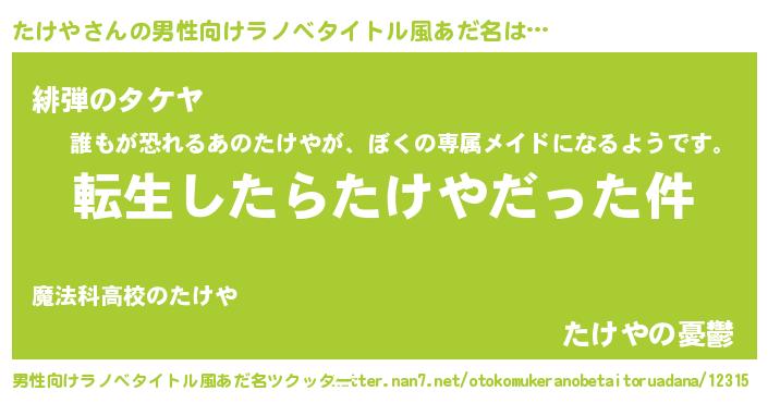 | 欧米人風あだ名 | 『トリンドルたけや』『マイケルたけや』 |