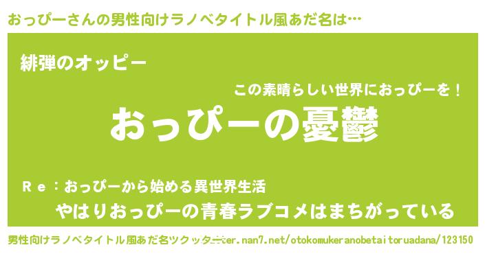 | 胡散臭い通販商品みたいなあだ名 | 『モテモテ間違いなし霊験あらたかなお札…その名も「おっぴー」』 |