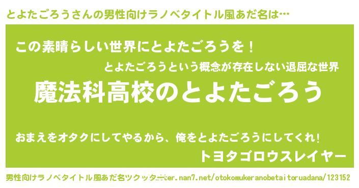 | 意味不明あだ名 | 『自称とよたごろう』 |