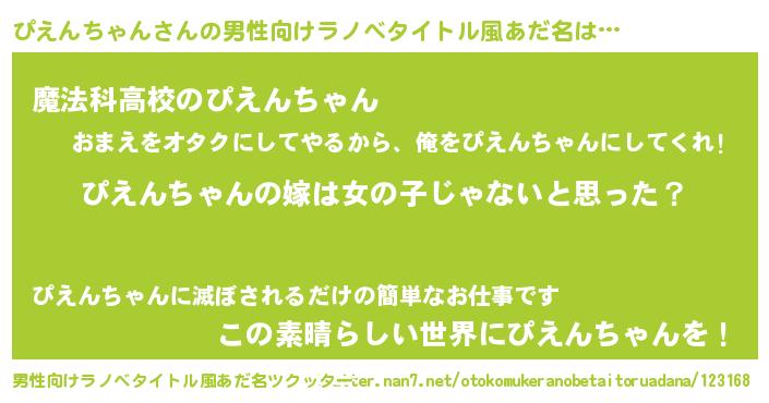 | 女子向けラノベタイトル風あだ名 | 『ぴえんちゃん様がみてる』 |