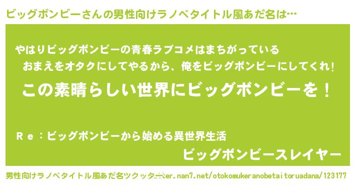 | 意味不明あだ名 | 『住所不定無職ビッグボンビー(91歳)』 |