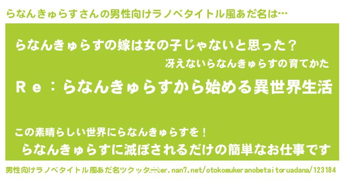 | 意味不明あだ名 | 『自称らなんきゅらす』 |