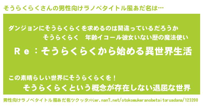 | 意味不明あだ名 | 『自称そうらくらく』 |