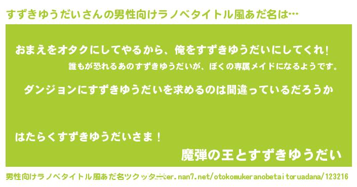 | 胡散臭い通販商品みたいなあだ名 | 『信頼と実績のネックレス…その名も「すずきゆうだい」』 |