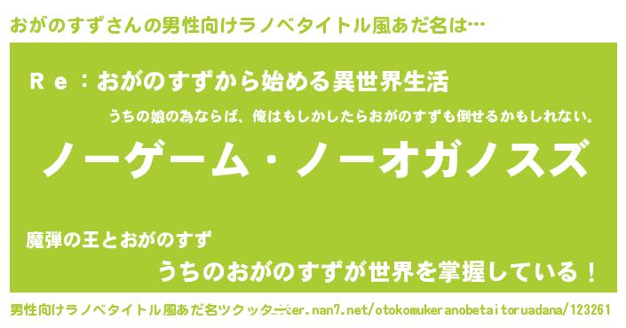| 肩書あだ名 | 『おがのすず学校長』『おがのすず総統』 |