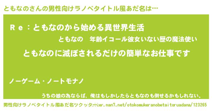 | ヒーロー風カッコイイあだ名 | 『最強戦士トモナノ』『仮面トモダー』 |