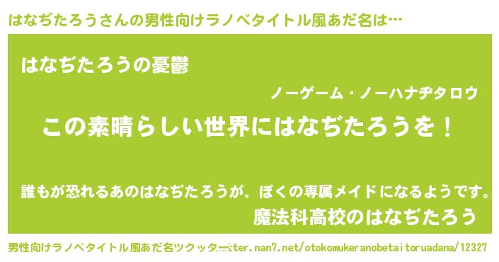 | 意味不明あだ名 | 『住所不定無職はなぢたろう(47歳)』 |