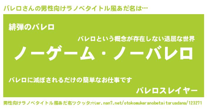 | 女子向けラノベタイトル風あだ名 | 『死神バレロの再婚』 |