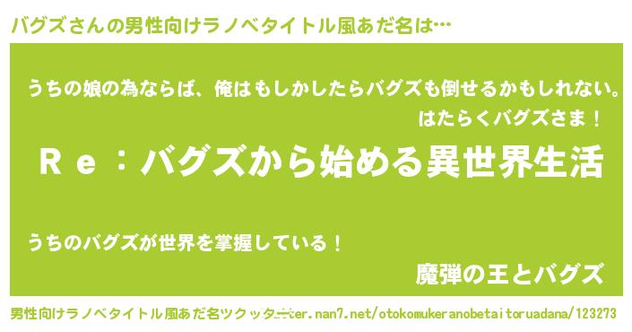 | 女子向けラノベタイトル風あだ名 | 『闇のバグズ』『バグズの婚約者』 |