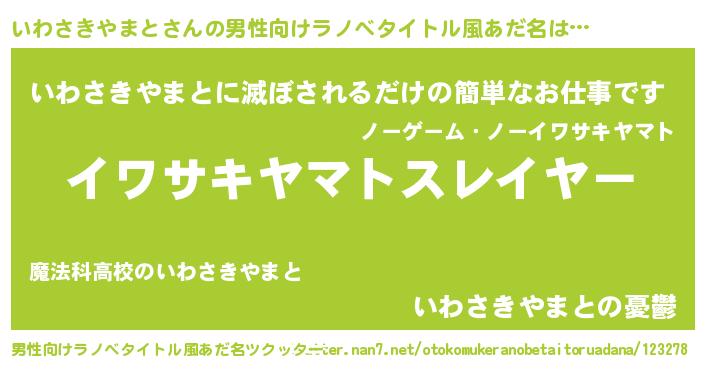 | 胡散臭い通販商品みたいなあだ名 | 『必ず成功する水晶球…その名も「いわさきやまと」』 |
