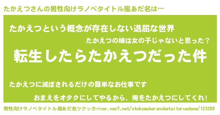 | ヒーロー風カッコイイあだ名 | 『ネオタカエツ』『正義の使者たかえつ』 |